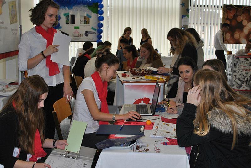 Auch dieses Jahr nahm die A&M Süßwarenhandel GesmbH wieder, neben zwei anderen Übungsfirmen, an der Hausmesse am Tag der offenen Tür teil. Durch leckere Kostproben und einem raffinierten Gewinnspiel, konnte unsere Übungsfirma viele Schüler/innen, aber auch schulfremde Personen anlocken. Für die Verkäufer der A&M war dies eine tolle und praxisnahe Erfahrung.
