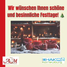 Das gesamte Team wünscht Ihnen und Ihrer Familie erholsame Festtage, viel Gesundheit und Glück im neuen Jahr!